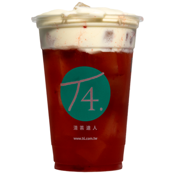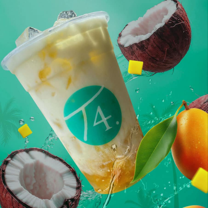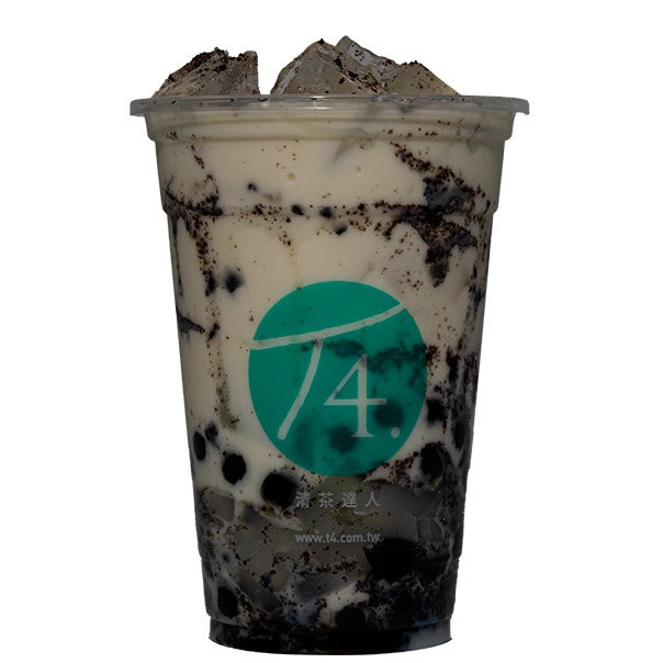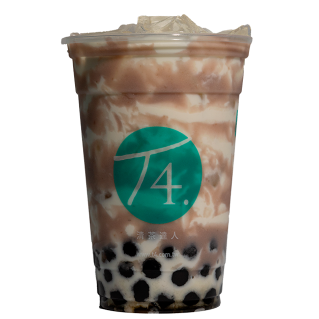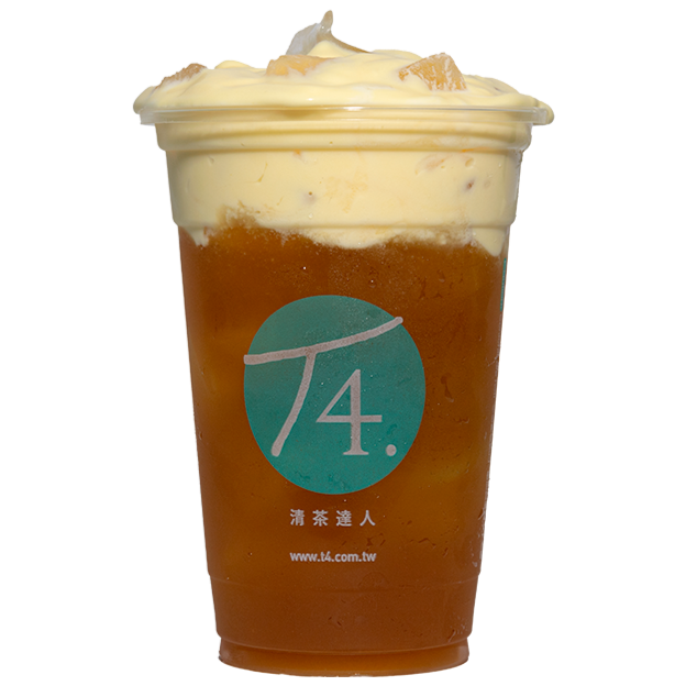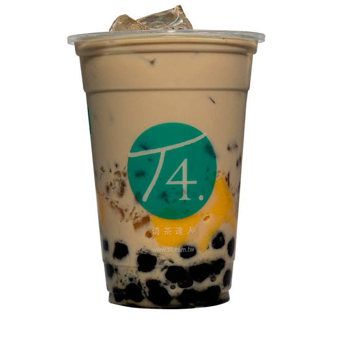 Té royal y crema no láctea con perlas, tropical jelly, leche condensada y galleta