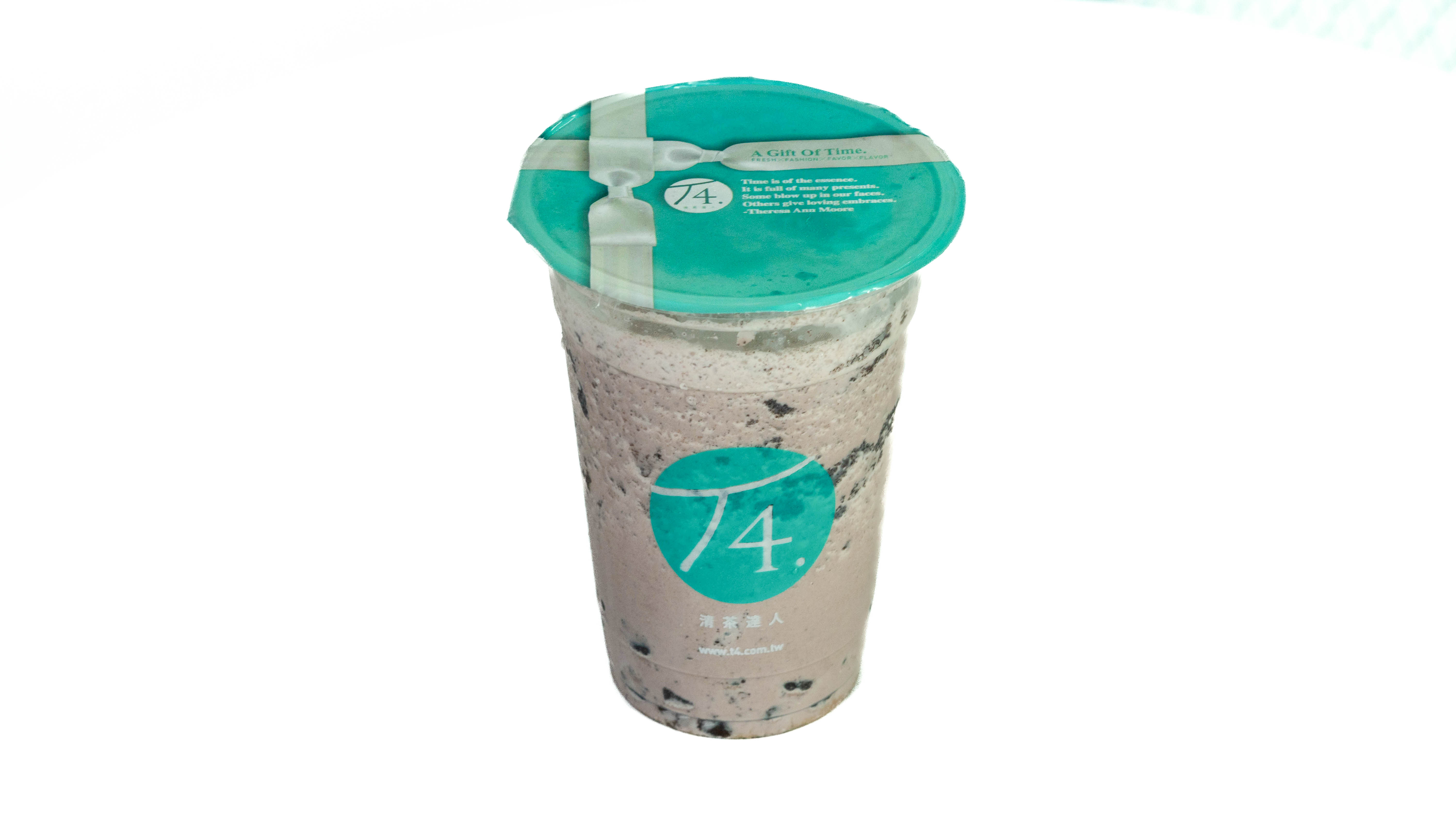 Té royal, leche, chocolate, taro, perlas y oreo.