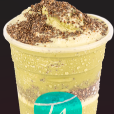 Granizado de matcha, leche y semillas de chia (Bebida láctea)
