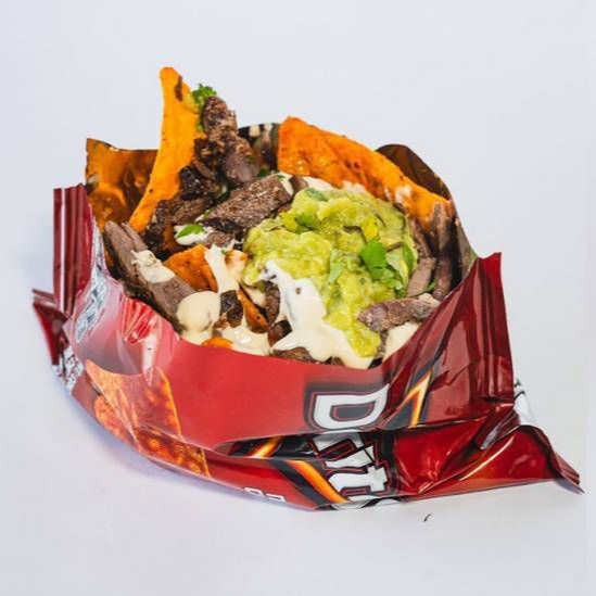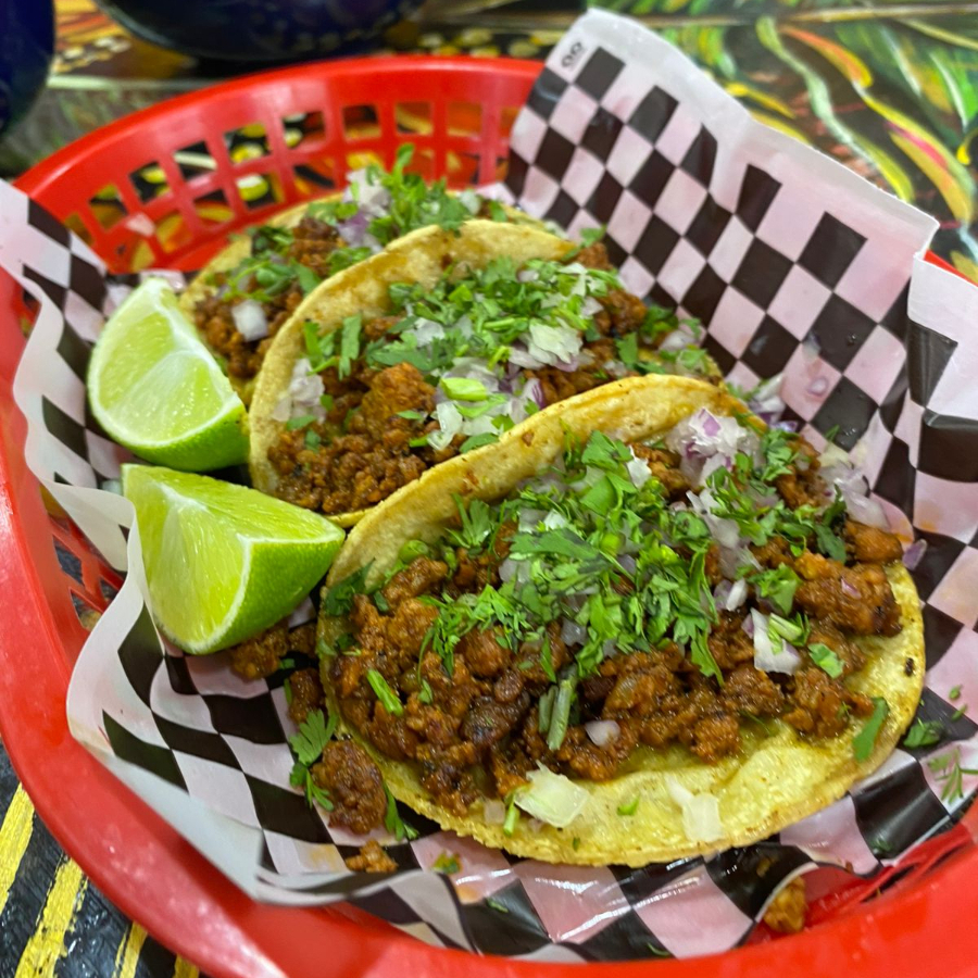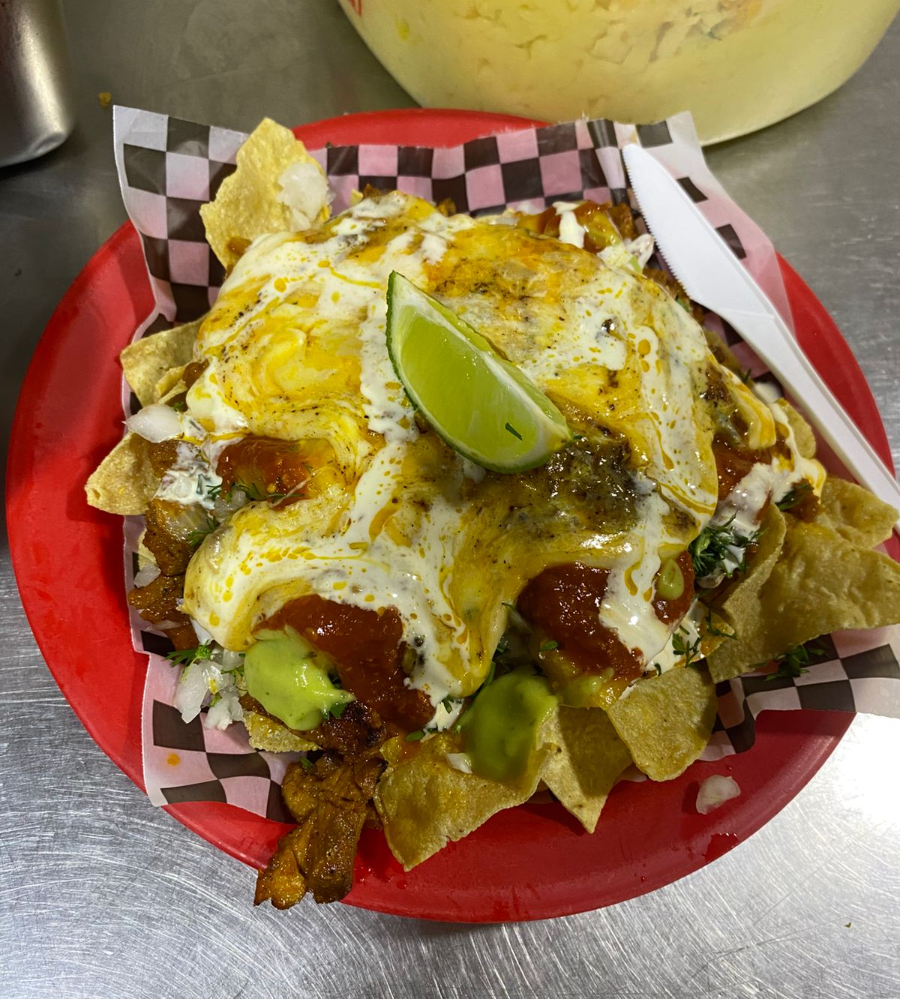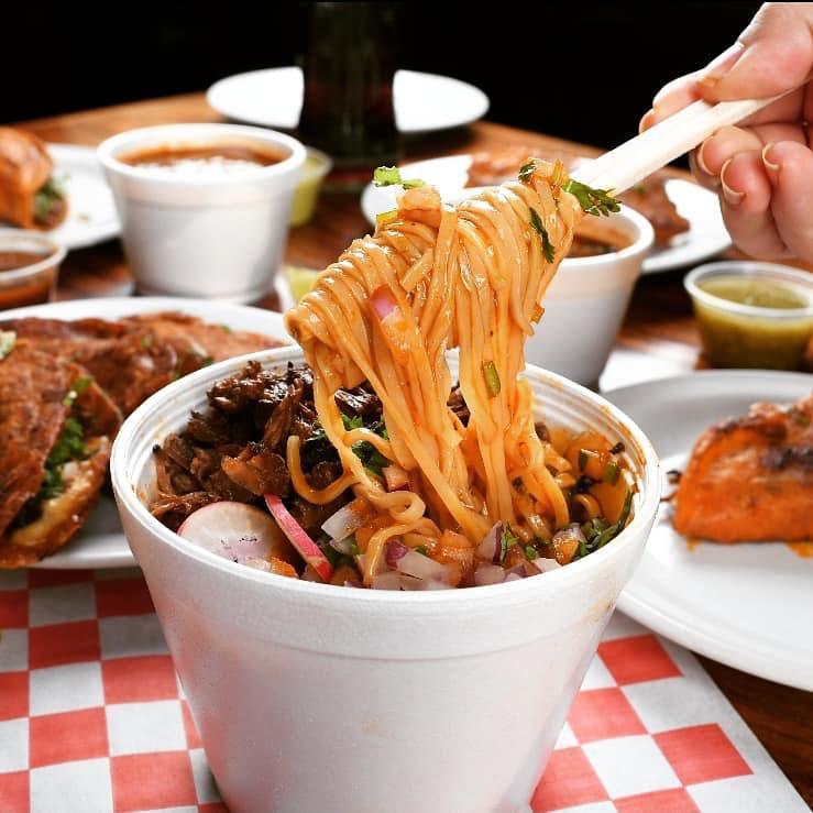 Pizza con una mezcla de diferentes carnes (birria y pastor).