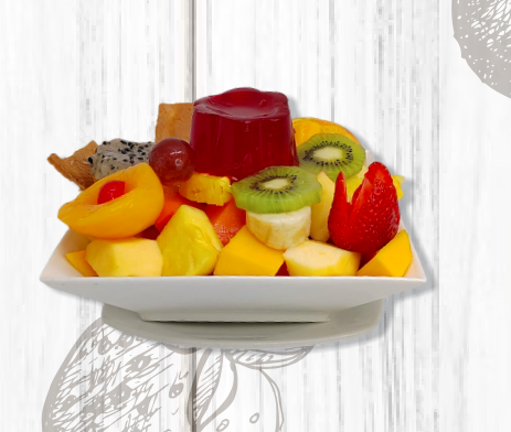 Preparación natural y saludable. Con papaya, melón, mango, banano, fresa, durazno, kiwi y pitahaya.