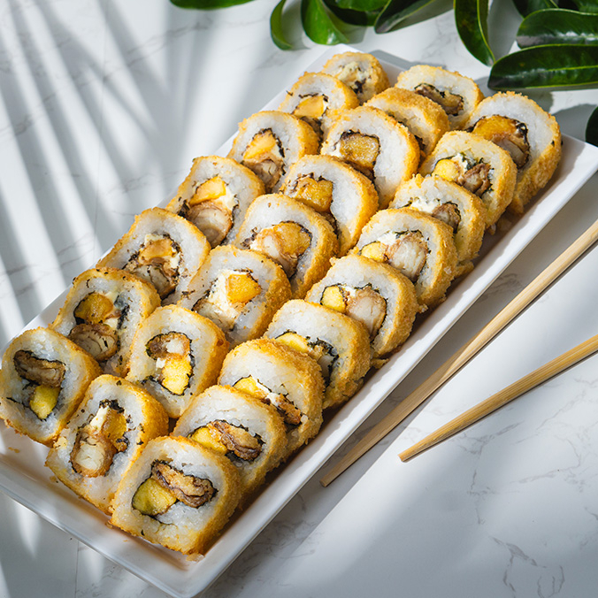 36 bocados de sushi tropicales a elección, todos tempura.