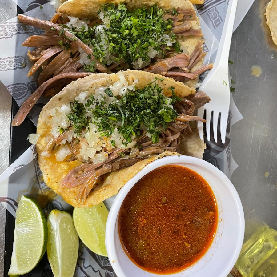 Birria, cebolla, cilantro.