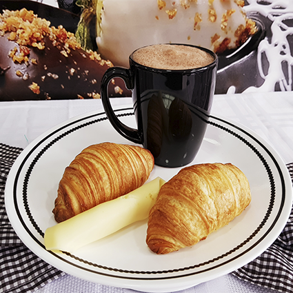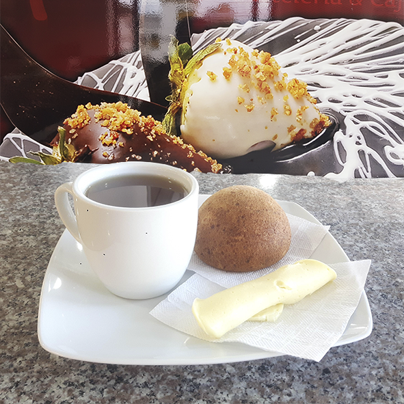 Combo de chocolate 9 oz, 2 panes y porción de queso.