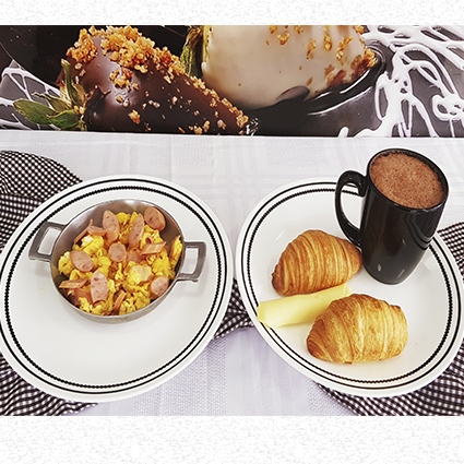 Huevos con Salchicha Ranchera*1 + Chocolate 9 oz*1 + Pan Pequeño*1 + Porción de Queso*1