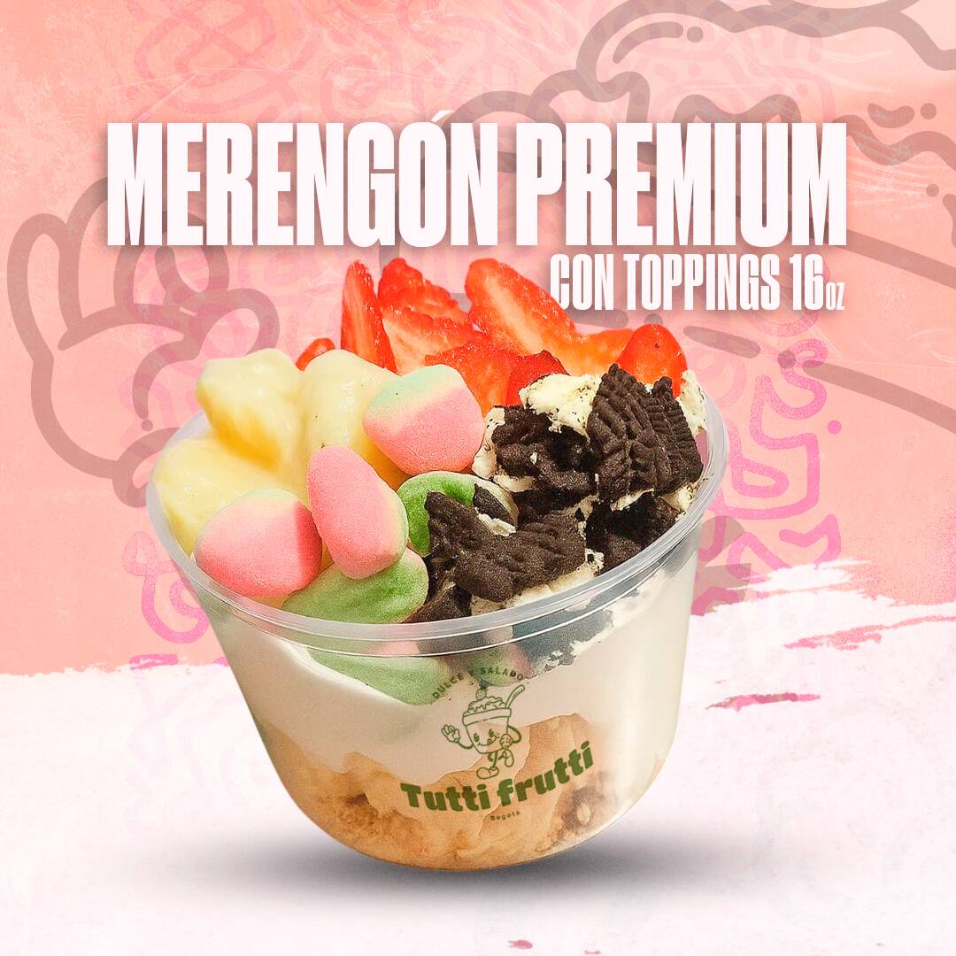 Disfruta de la frescura y el sabor inigualable de nuestro Merengón Premium. Una deliciosa experiencia servida en un práctico envase de 24 oz, perfecto para deleitarte con una combinación única de 3 frutas frescas, 2 toppings crujientes y 2 salsas cremosas, todas a tu elección. ¡Crea tu combinación perfecta y déjate llevar por el sabor!