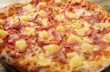 La inconfundible Pizza Hawaiana. Queso, jamón y piña. El equilibrio perfecto de dulce y salado.