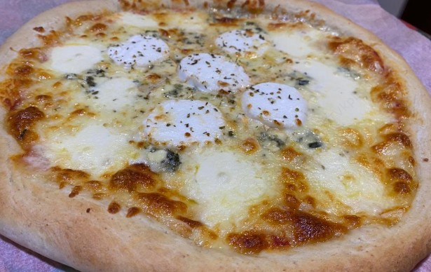 Pizza 3 Quesos. Queso mozzarella, queso azul y queso parmesano. Cremosa y aromática.