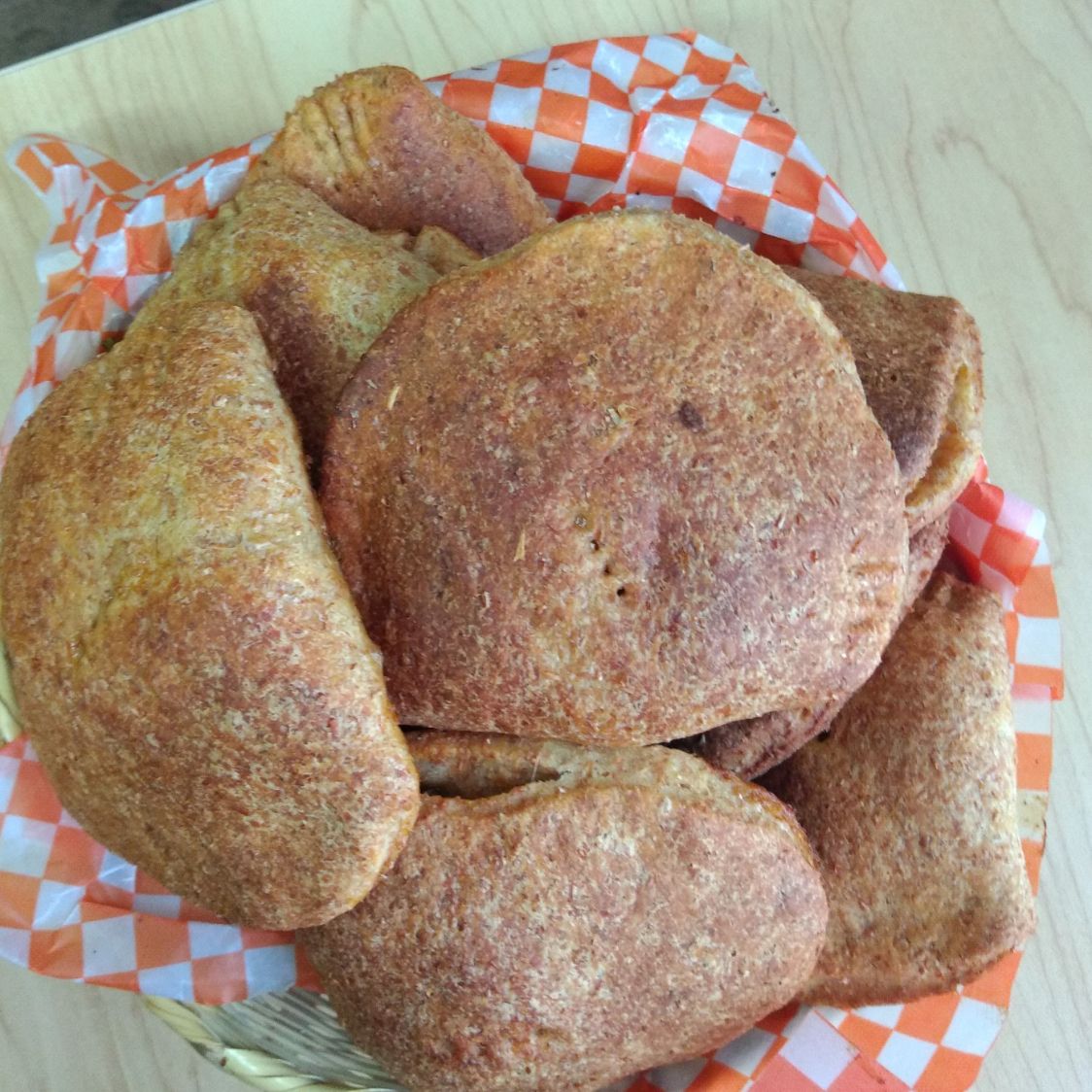 Empanada totalmente horneada en masa integral de la casa con tiras de tofu artesanal, garbanzo y champiñón.