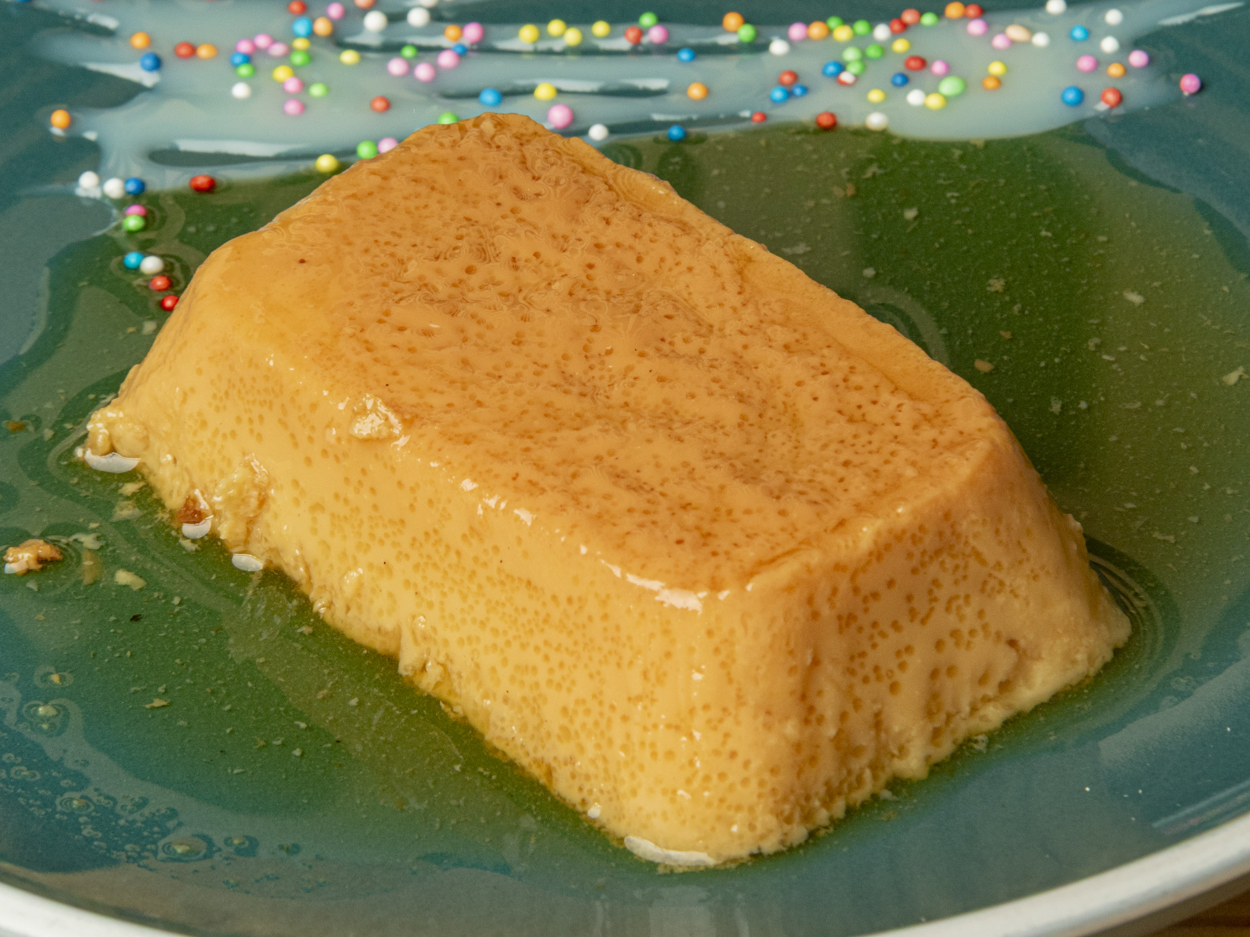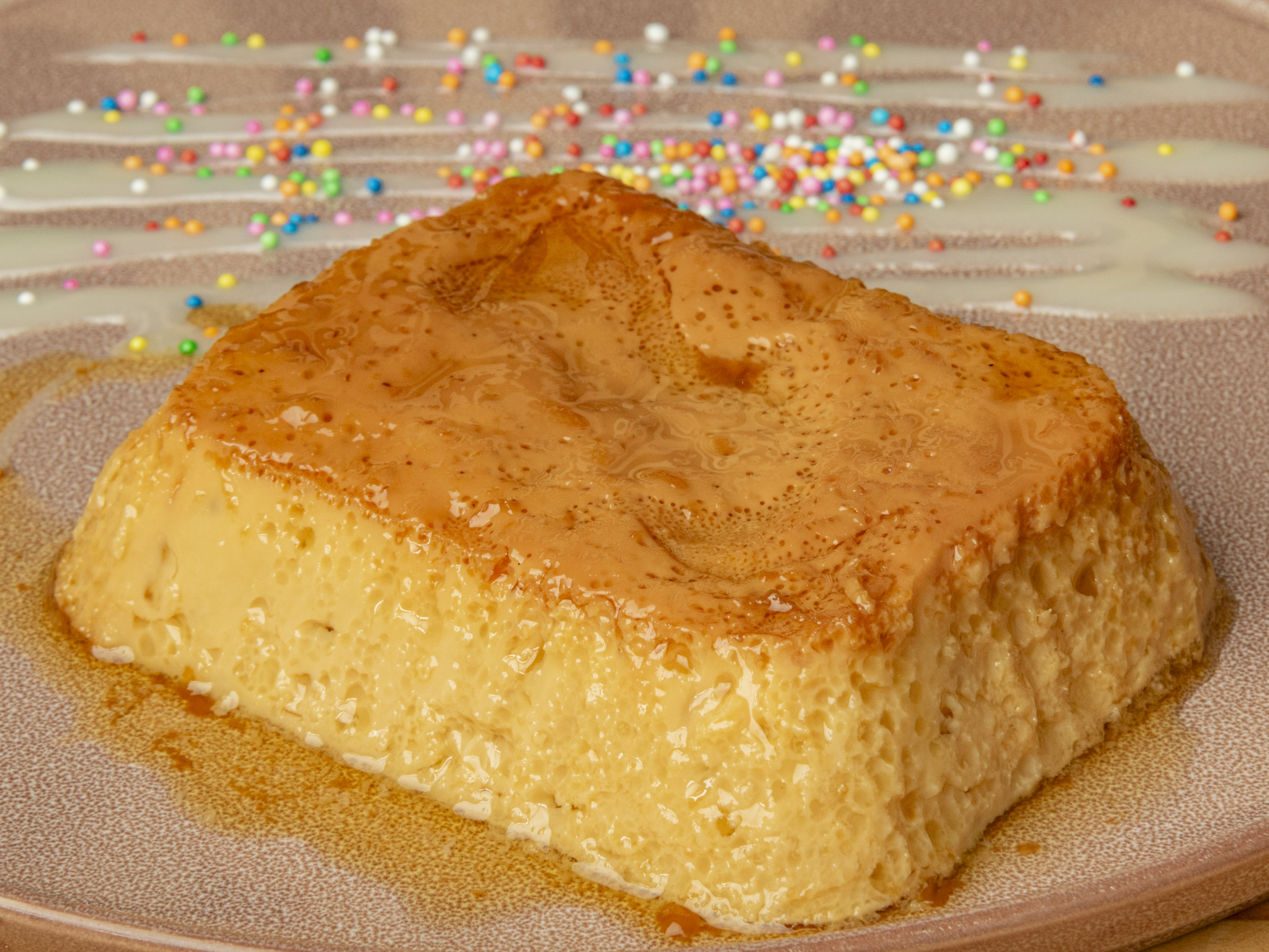 Flan de leche con melado de azúcar.