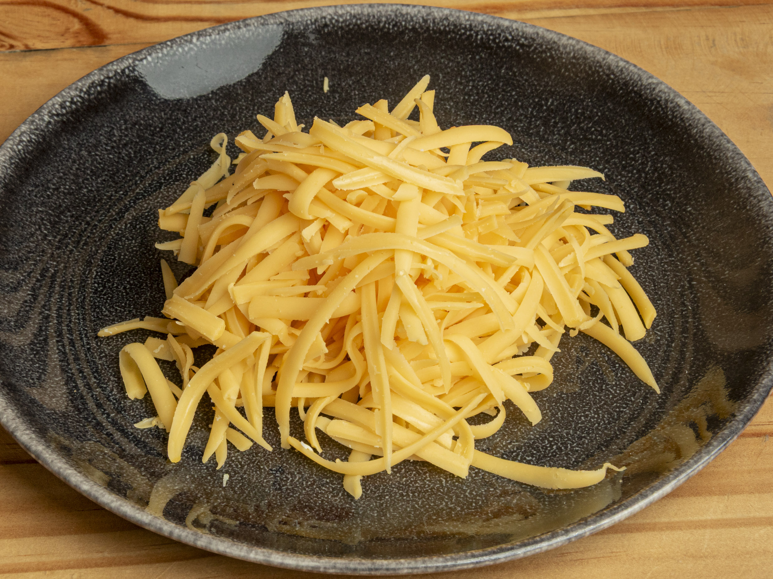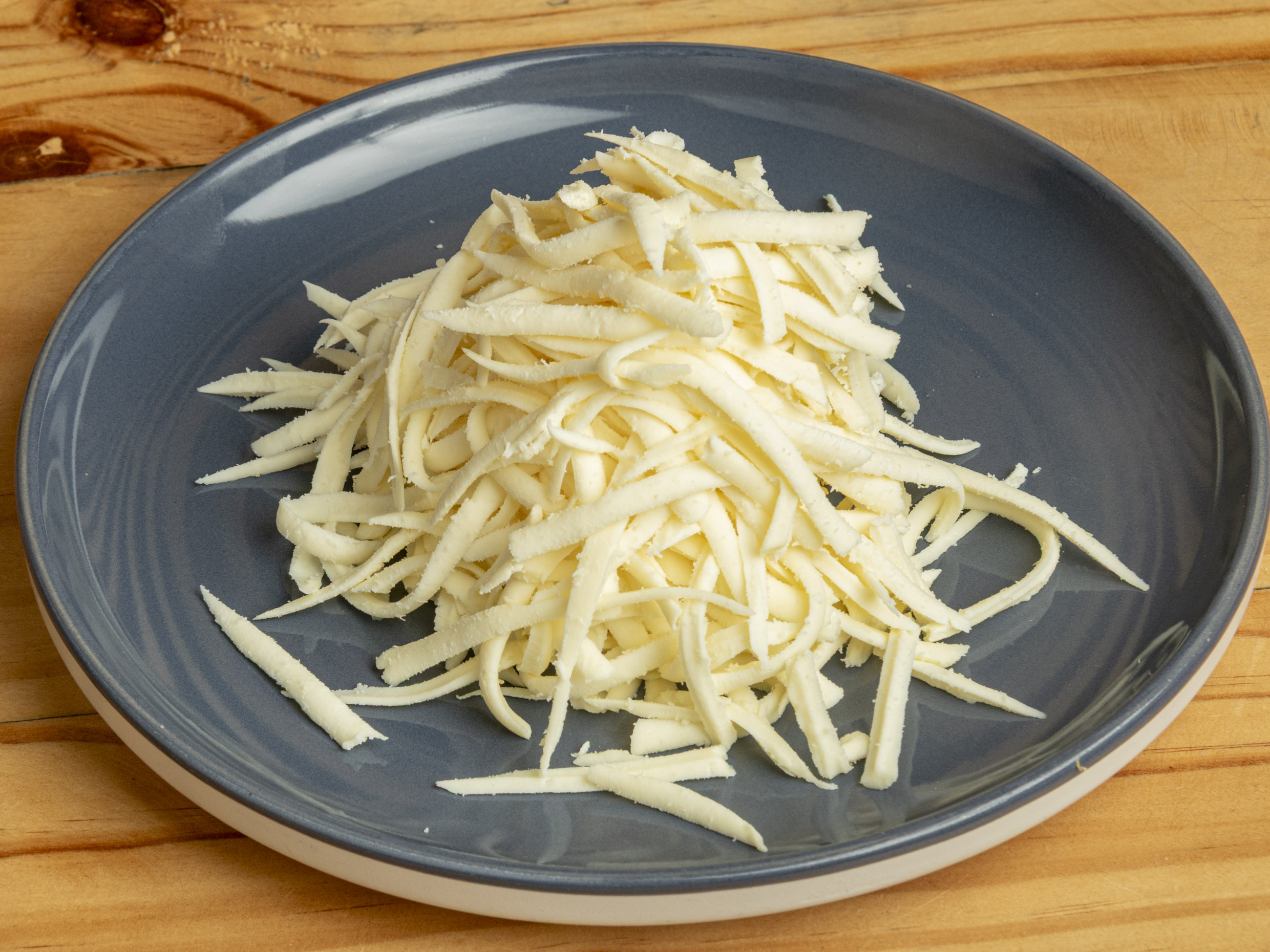 Carne desmechada y queso amarillo.