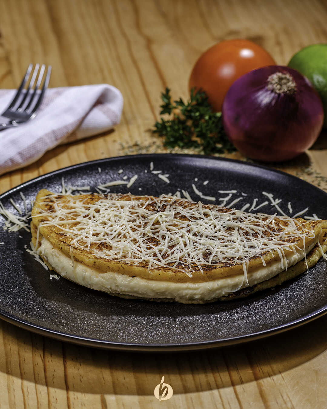 Tortilla de maíz, queso de mano y adición de proteína.
