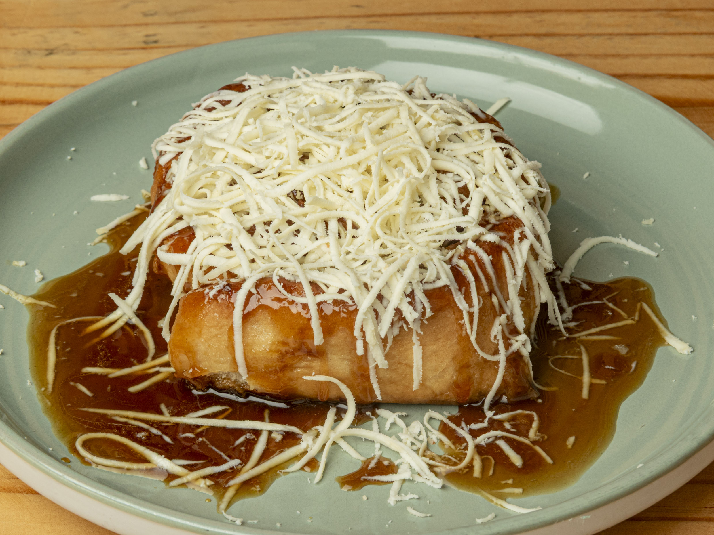 Pan dulce con panela, queso costeño y melado.