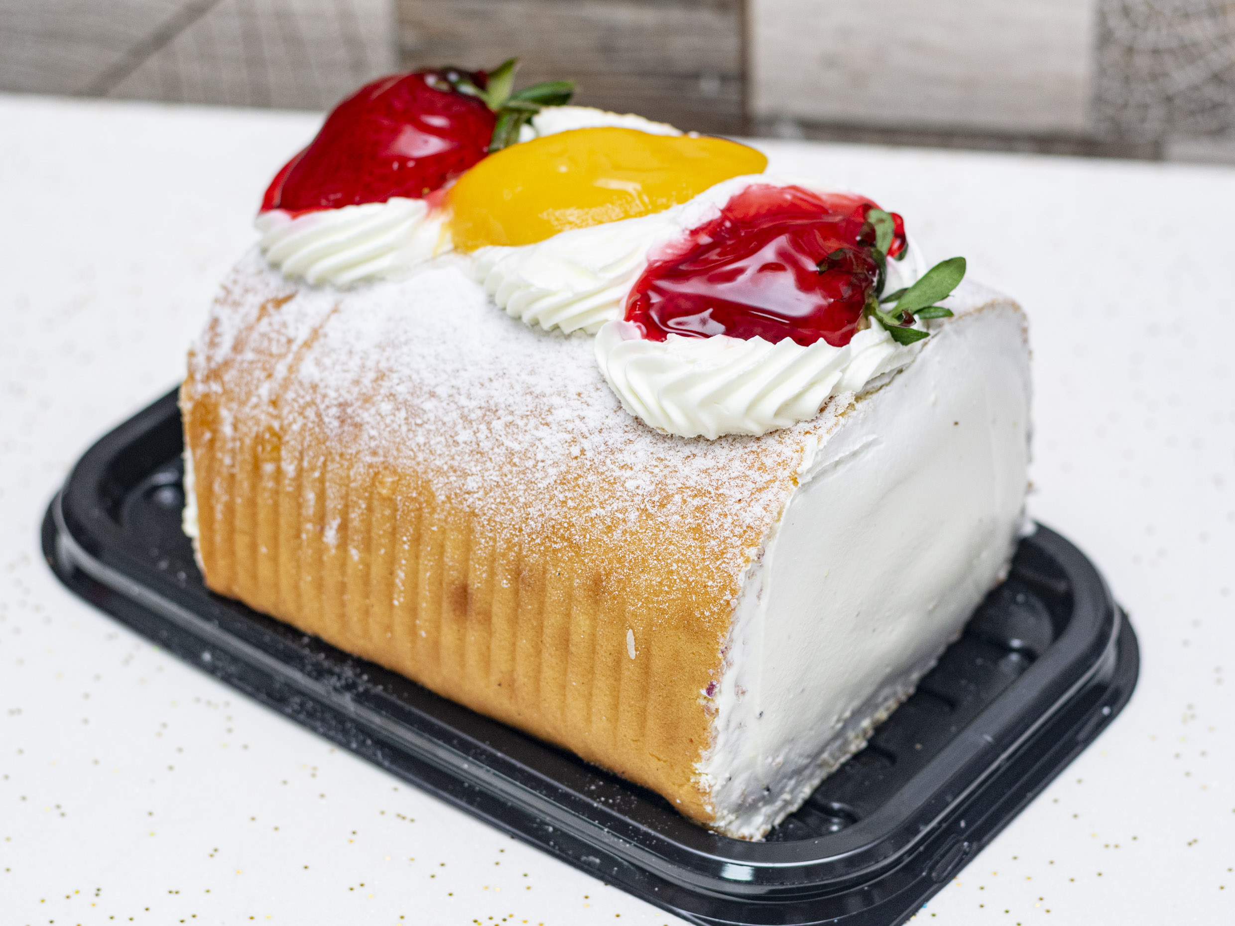 rollo de biscocho relleno de crema. especial para compartir en familia. aprox 6 porciones