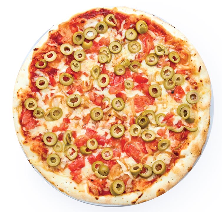 Queso, tomate, cebolla, aceitunas verdes, champiñones, pimentón y zanahoria.