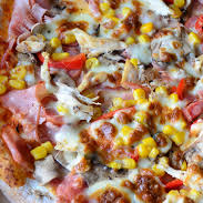 Masa pizza krunchy's, salsa pizza artesanal, queso mozzarella y 1 ingrediente a tu elección (jamón, peperoni, pollo en crema, tocineta, maíz o champiñones al ajillo).