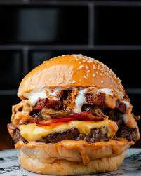 Pan brioche finas hierbas, 150 grs de carne, doble queso cheddar, doble tocineta, lechuga, tomate, cebolla, pepinillos, salsa pickel's y salsa ginger's cream.