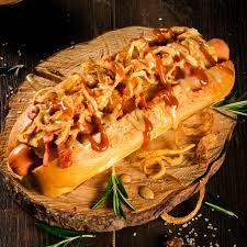 Pan artesanal salchicha tipo americana zunu queso mozzarella queso cheddar pollo desmechado con salsa de la casa chorizo papas francesas salsas de la casa.+1
