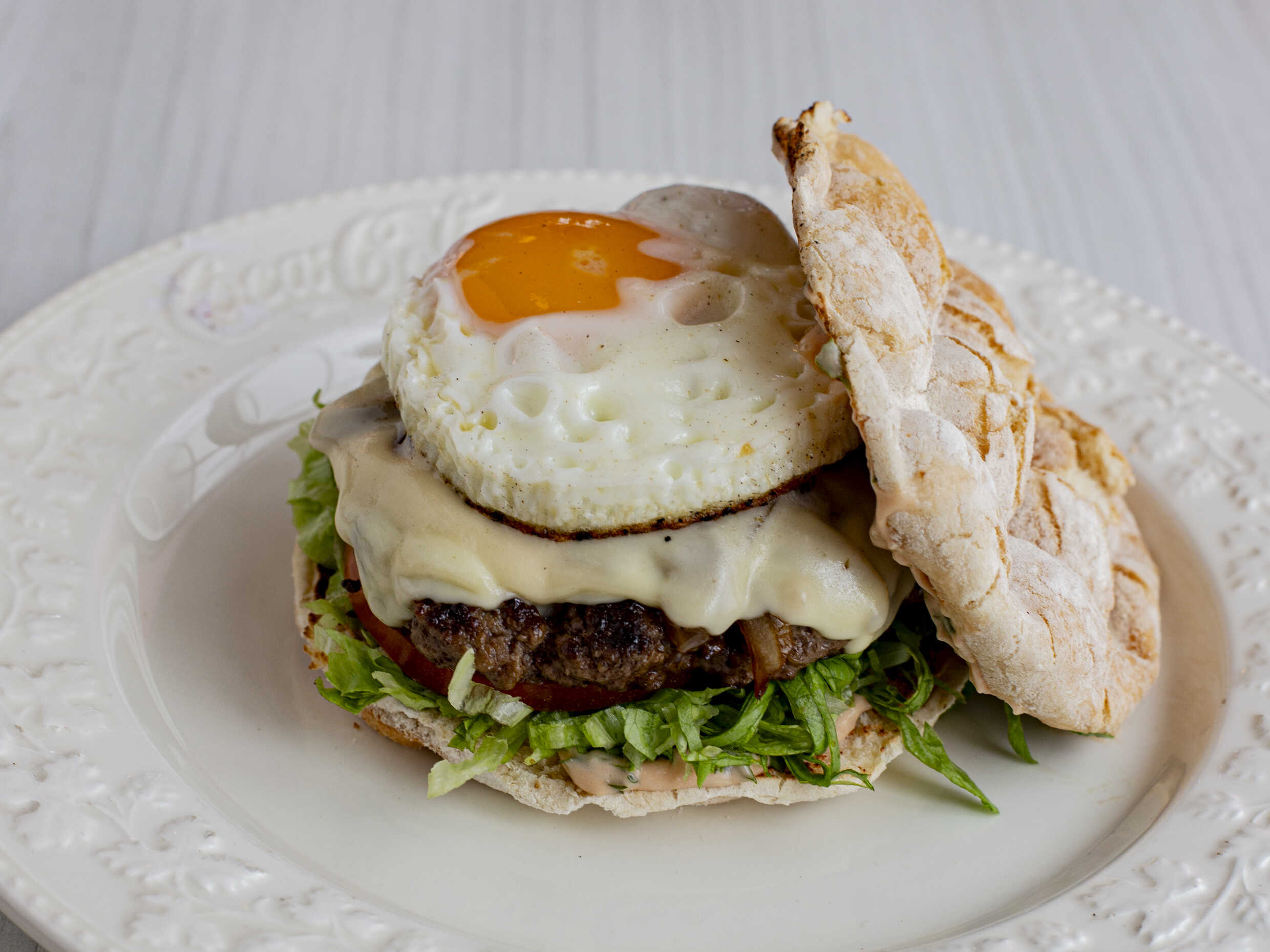 Saborea nuestra suculenta carne de res 100% de 125 g en un pan burbuja, realzada con rodajas de tomate, fresca lechuga, cebolla especial, queso mozzarella fundido, un huevo perfectamente cocido y nuestra exclusiva salsa de la casa.porcion de papa a la francesa gaseosa + de tu preferencia.