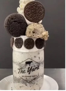 Nutella, 4 helados de oreo, chantilly, barquillos, galletas oreo, salsas y chips.