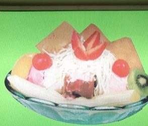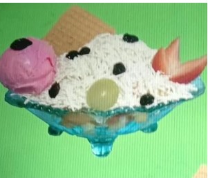 Fruta picada de papaya,melón,mango,fresa,banano,crema de la casa,queso,1 helado,gelatina,kiwi,higo,pitaya,durazno,manzana,uva,cereza,galleta,barquillos,mil