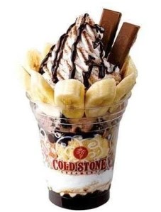 Relleno de banano, fresa, galleta oreo, queso, salsa, chantilly y helado.