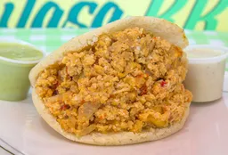 Arepa rellena con huevos pericos tomate y cebolla