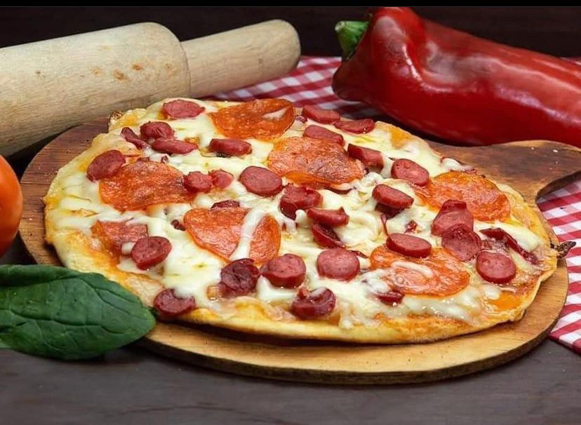 Masa delgada, queso, pepperoni americano y cabano. 20 cm de diámetro.