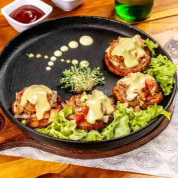 Patacones con carne desmechada 4 pzas.