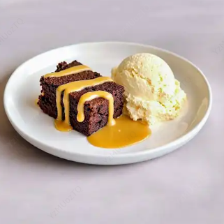 Brownie de chocolate y arequipe, acompañado de helado de vainilla.