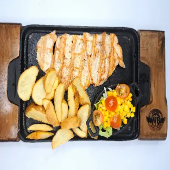 Pechuga de pollo a la plancha, acompañada de papa a elegir y ensalada de la casa.