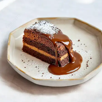 Esponjosa torta de chocolate con relleno de arequipe.