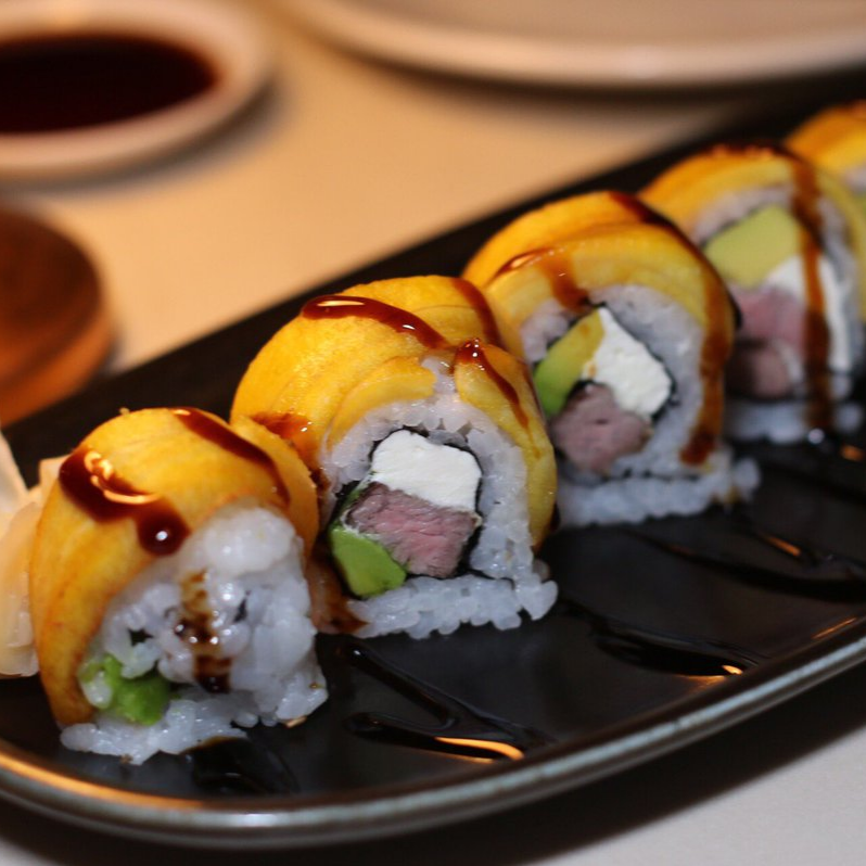 rollo nori maki rellenó de atún fresco queso crema y aguacate