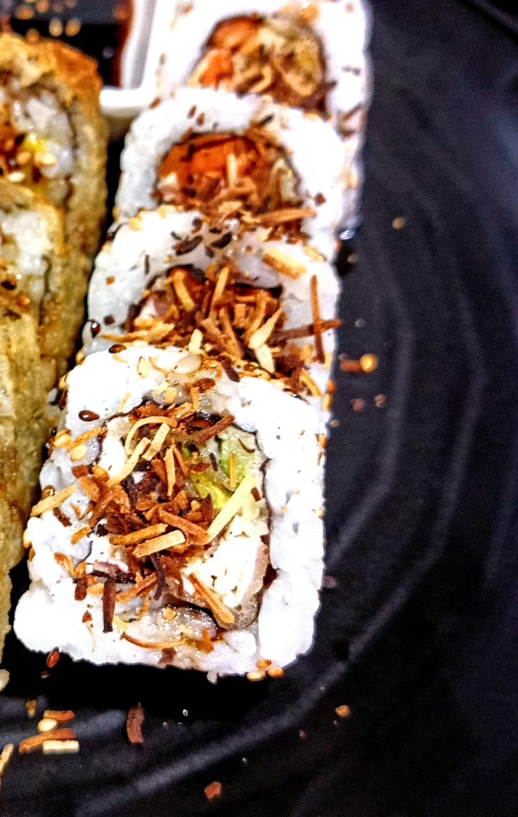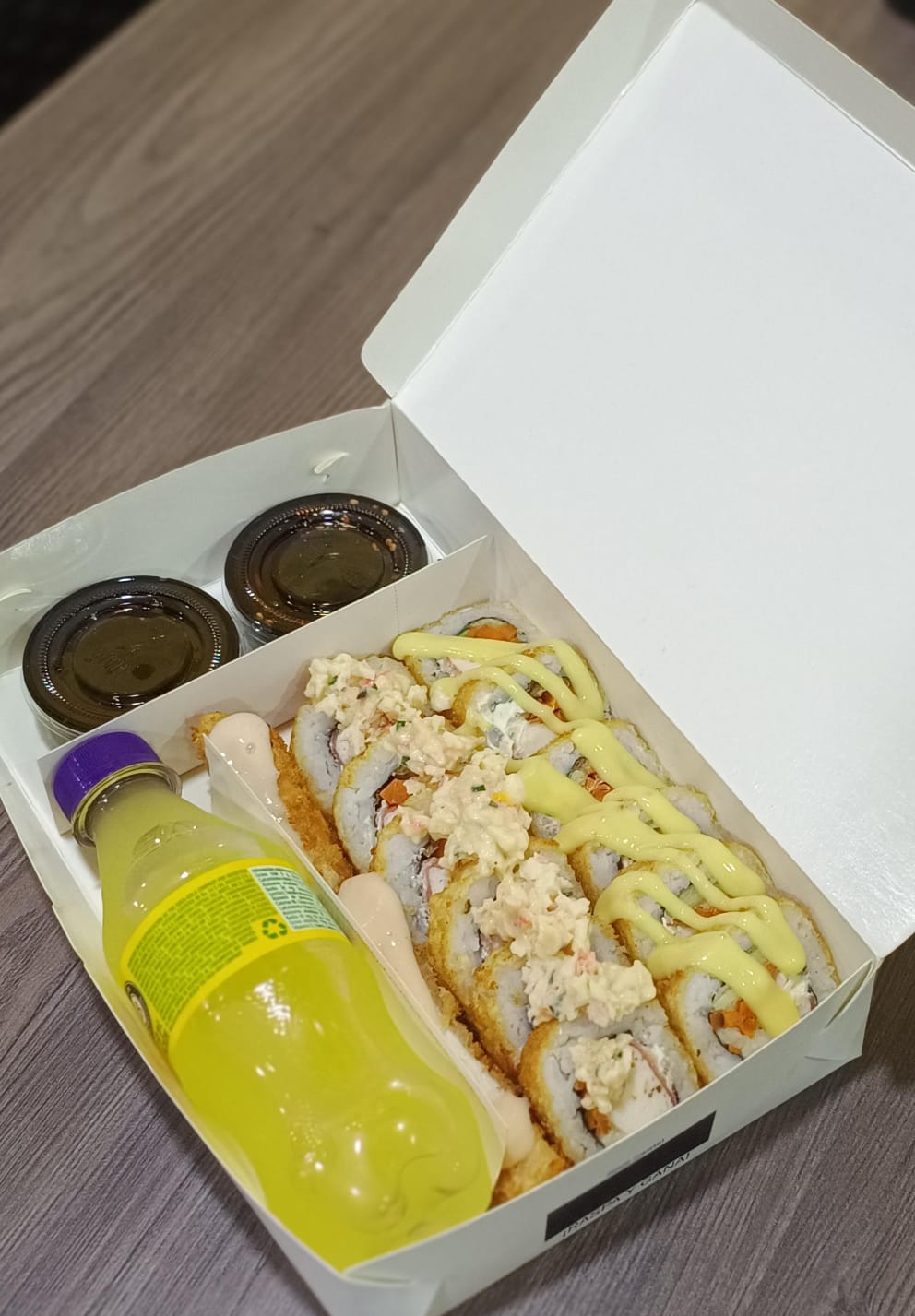 6 California coconut top + 4 California maracuyá tempura+ salsa teriyaki + 1 hashi.