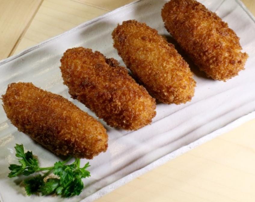 4 Ricas croquetas bañadas en salsa de nikkei.