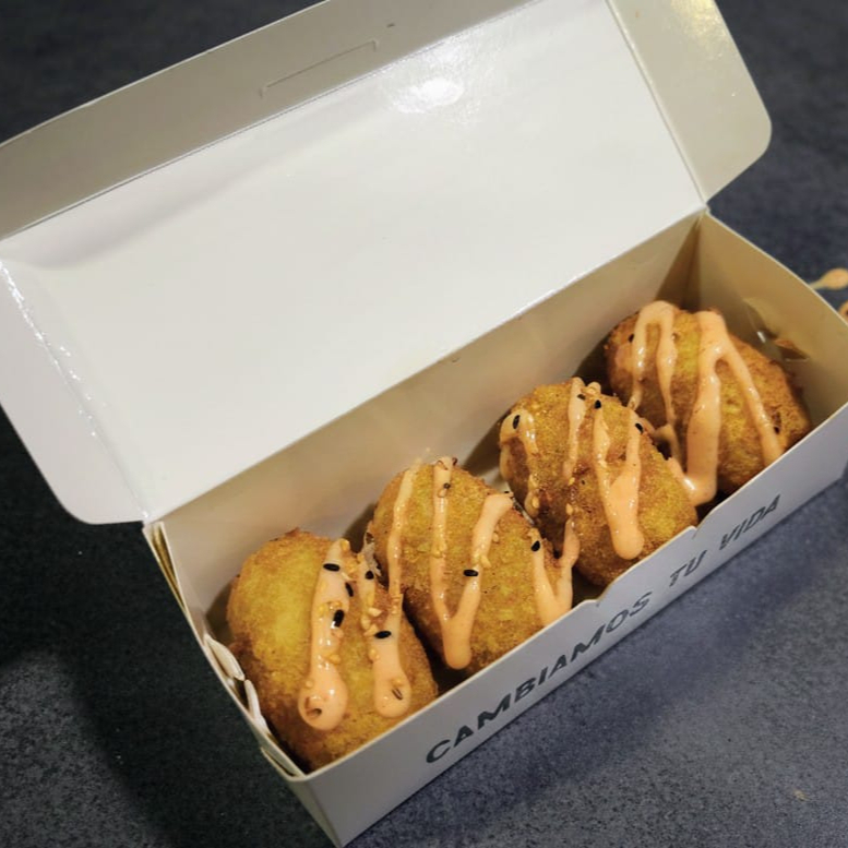 4 CROQUETAS DE CANGREJO EN SALSA NIKKEI.