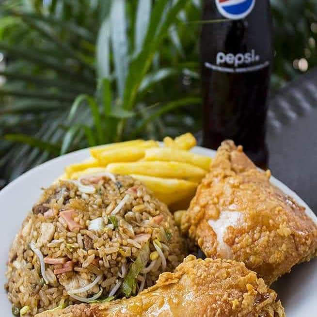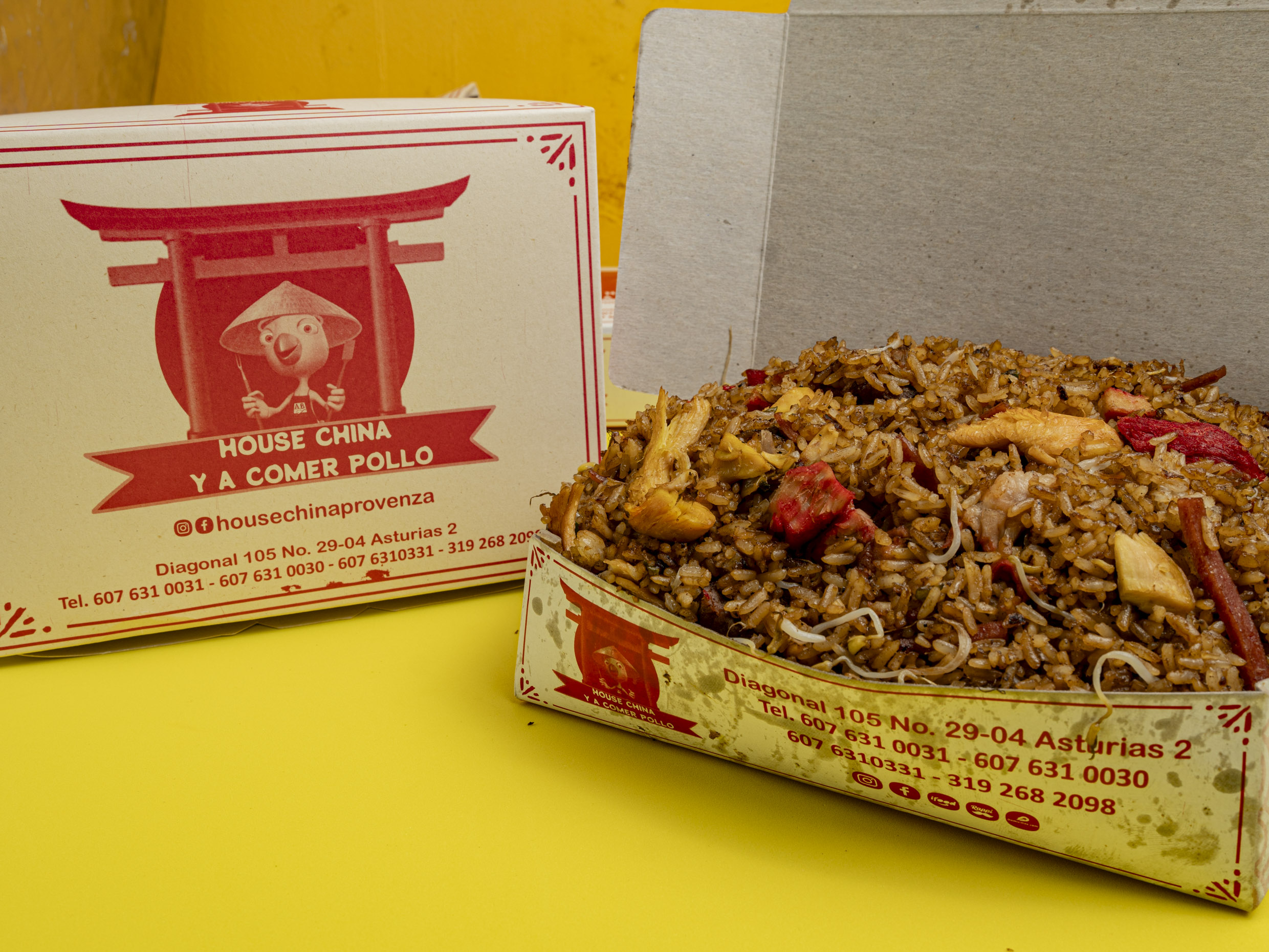 Arroz chino personal, papa francesa, proteína a eleccion: cuarto de pollo asado, cuarto de broaster, cerdo BBQ, carne y lumpia, Gratis bebida ( disponibilidad de la tienda)