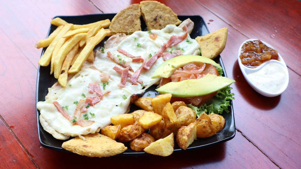 Incluye papa francesa y croquetas de yuca frita.