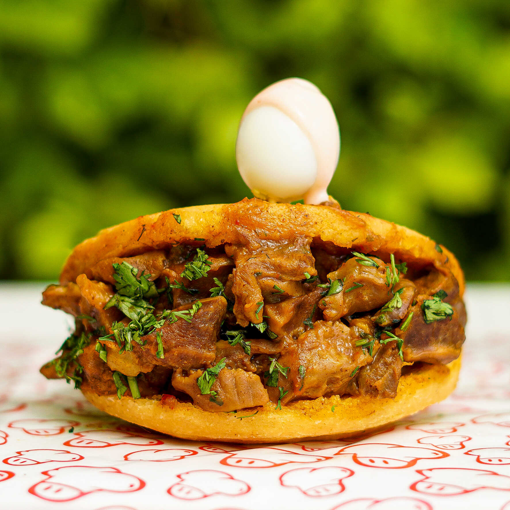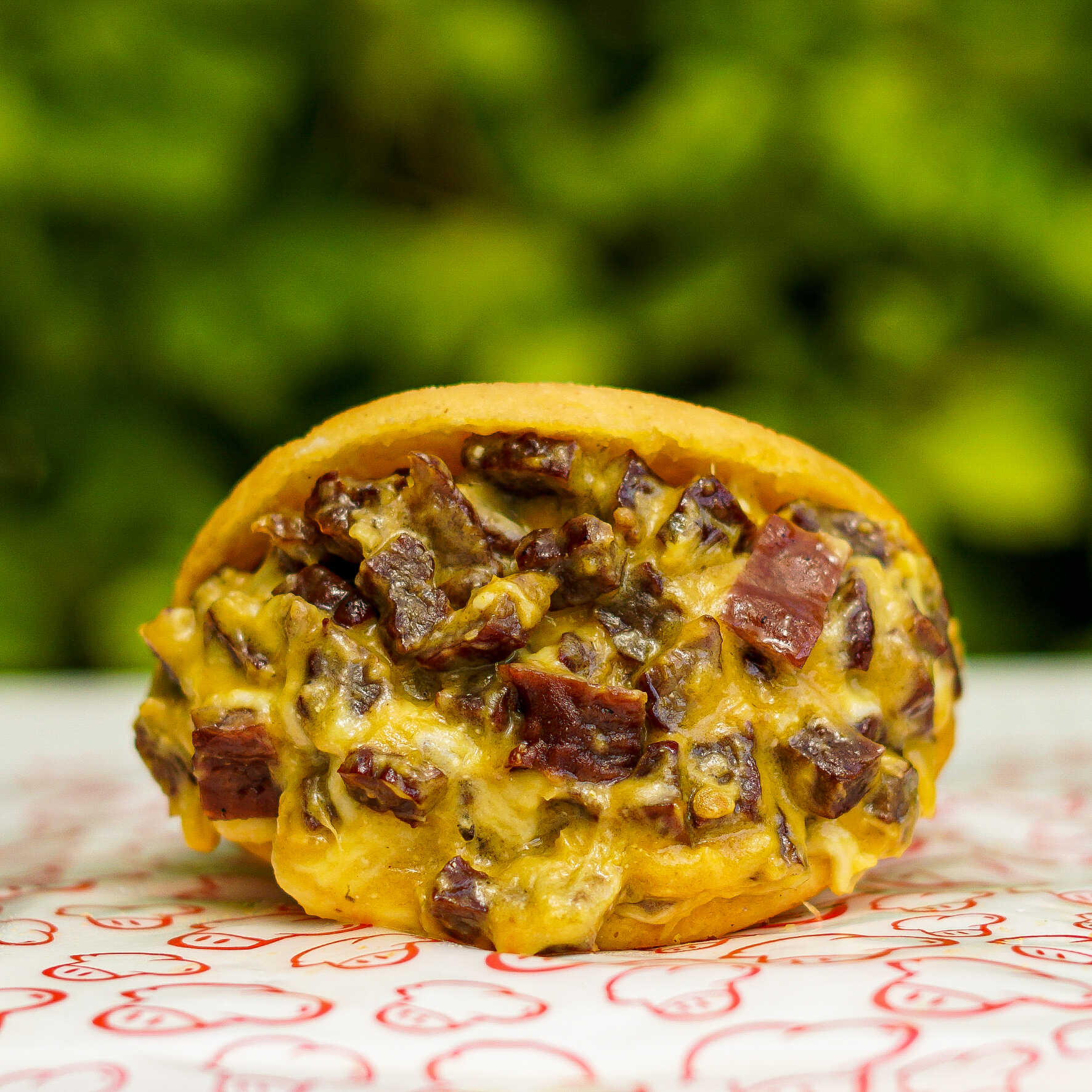 Carne desmechada, chorizo de ternera, maíz tierno, huevo de codorniz y queso (200 g).