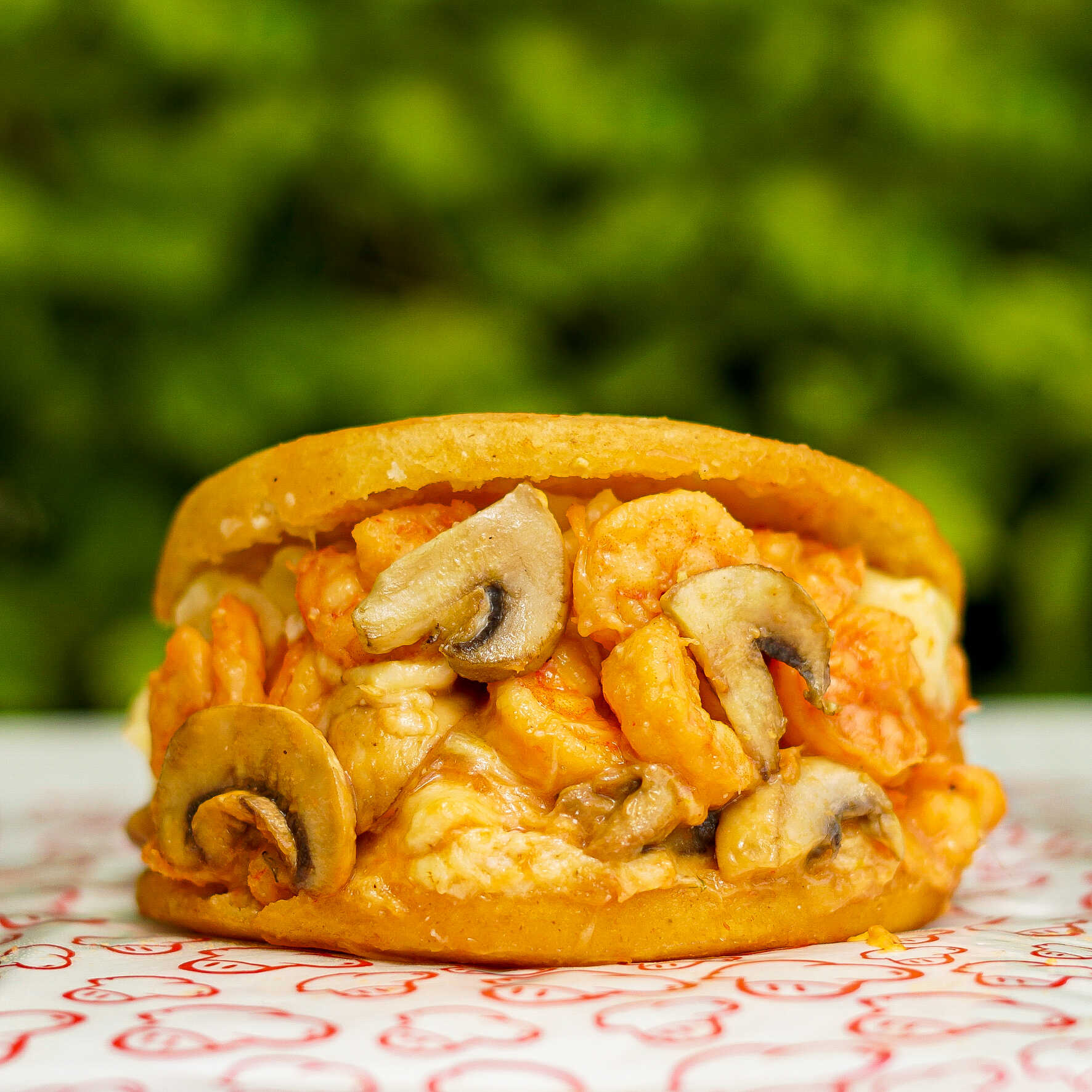 Camarones al ajillo, champiñón y queso (200 g).