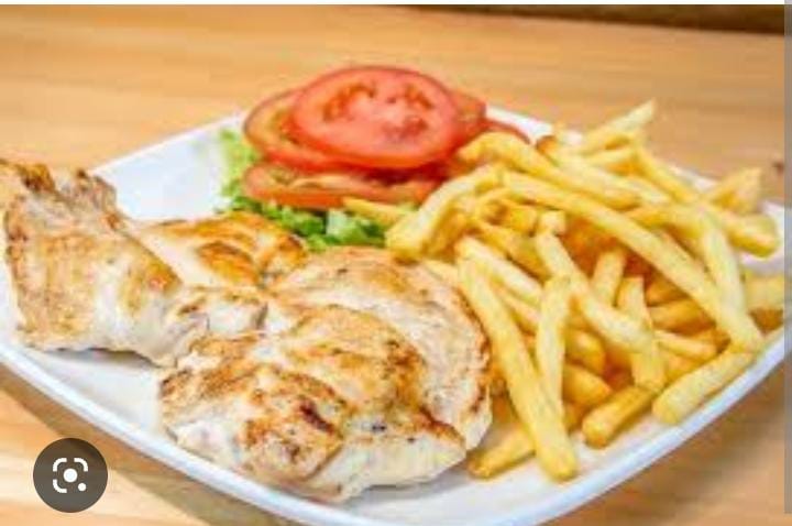 Arroz chino, 1/2 pollo asado y papa a la francesa.