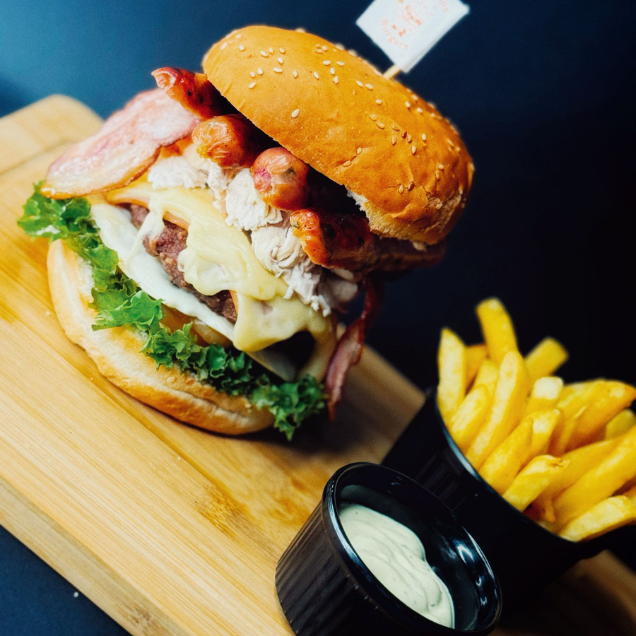 CHORIZO, CARNE DE RES, POLLO DESMECHADO, JAMON, QUESO, TOCINETA, CERDO AHUMADO EN BBQ,VEGETALES, SALSAS,