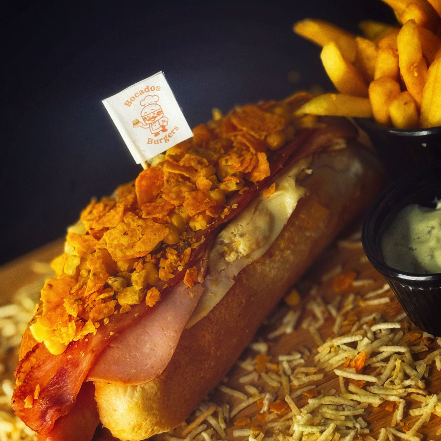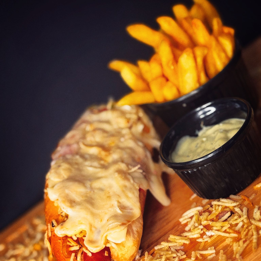 PAPAS FRANCESAS, SALCHICHAS, QUESO, PAPA RIPIO, CEBOLLA GRILLE.