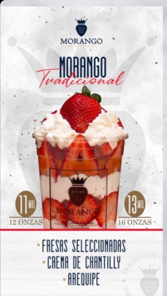 16 Oz Fresas seleccionadas, crema de chantilly y arequipe.