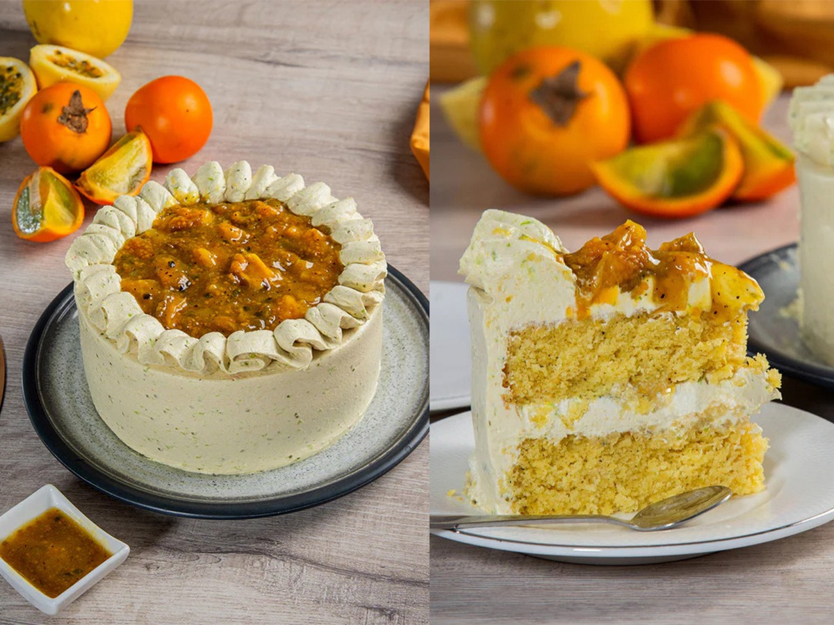 Bizcochuelo de limón húmeda rellena de lulo , cubierta con crema lulada