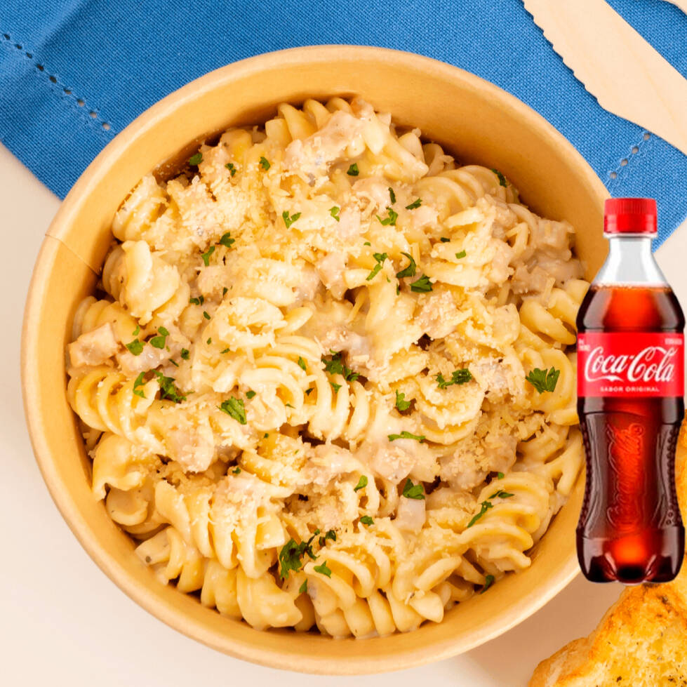 Pastas fusilli bañadas en salsa bechamel , acompañamiento a tu elección