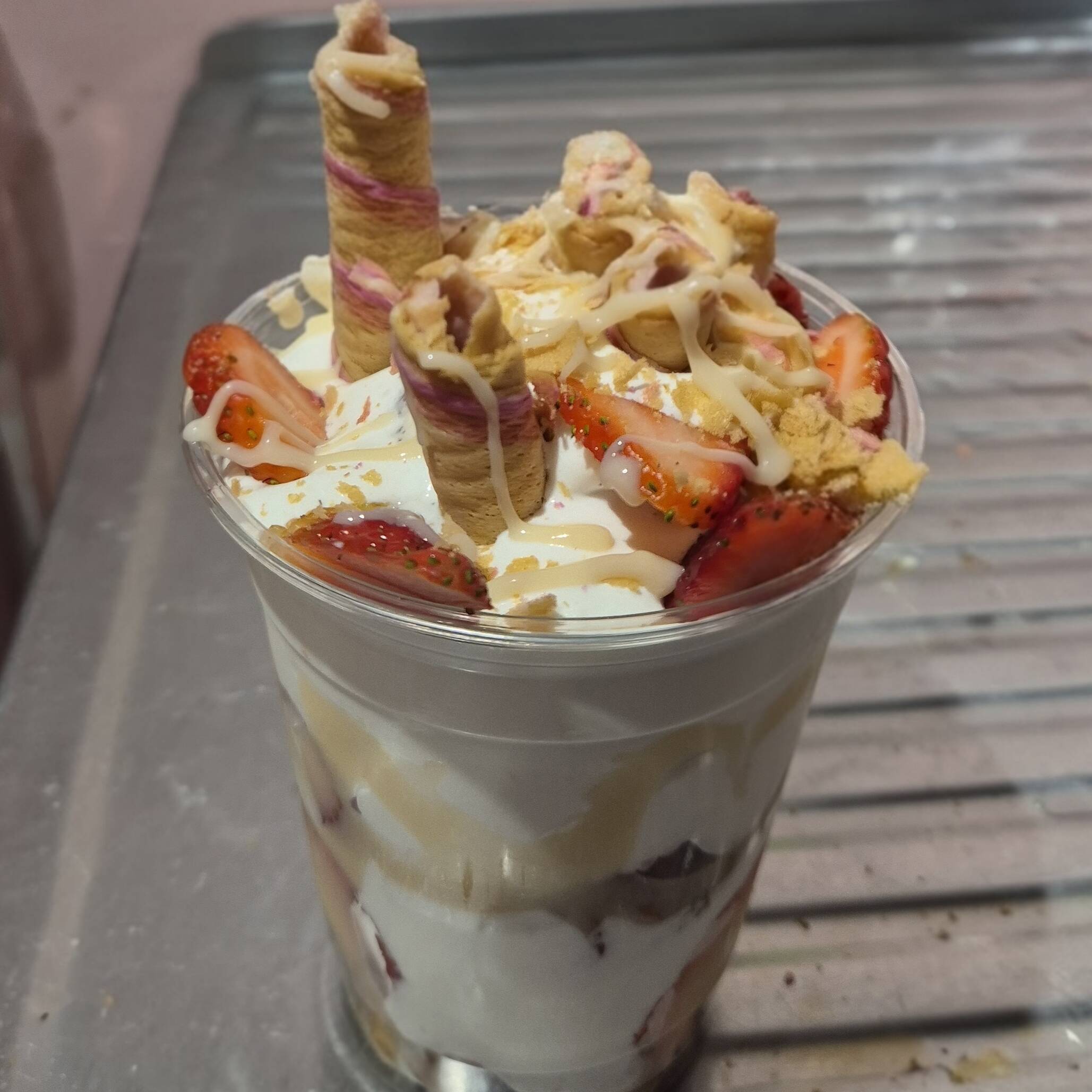 Fresas,Chantilly,Queso,1 bola de helado,Leche condensada.