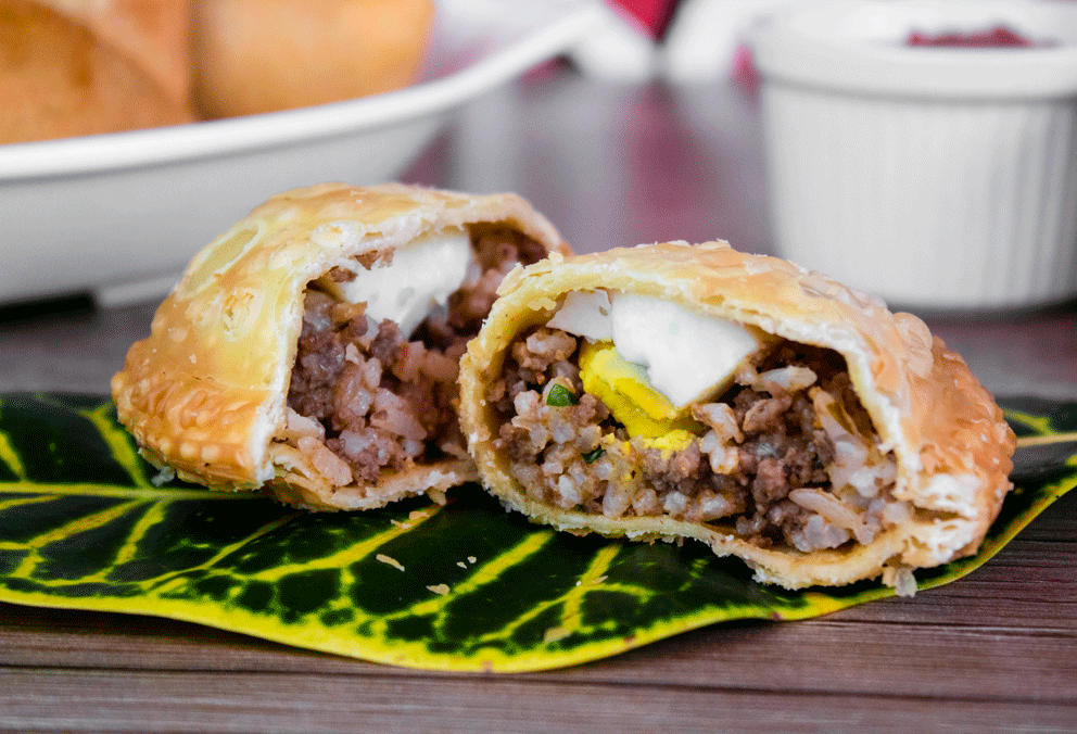 carne, pollo desmechado ,vegetales ,tocineta ,queso