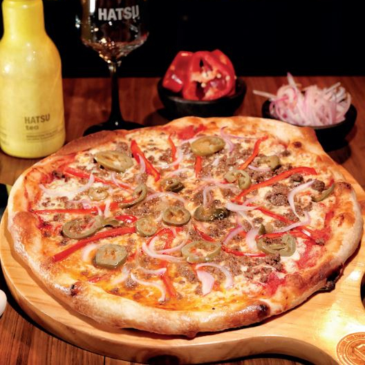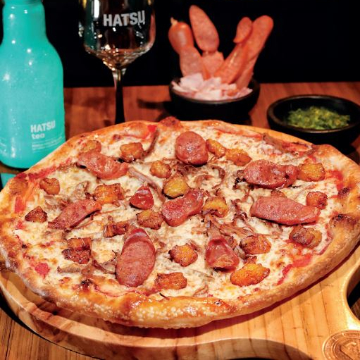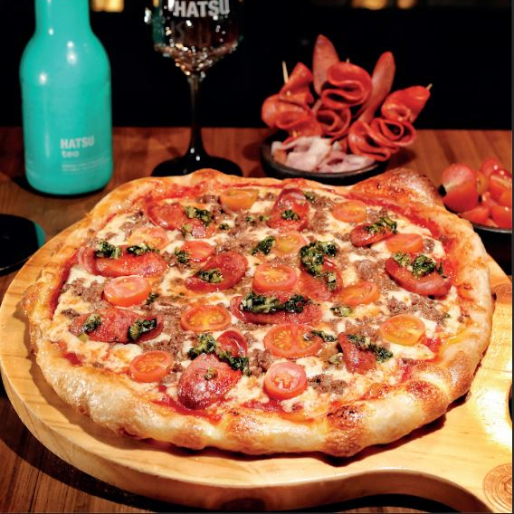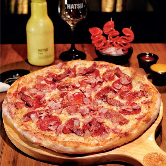 Cabano, pepperoni, chorizo, tocineta, queso.