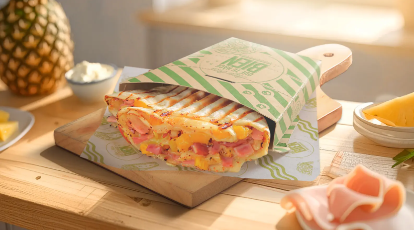 Queso mozzarella, piña y jamón. Nuestras preparaciones se encuentran estandarizadas por lo tanto no se pueden realizar modificaciones en los ingredientes